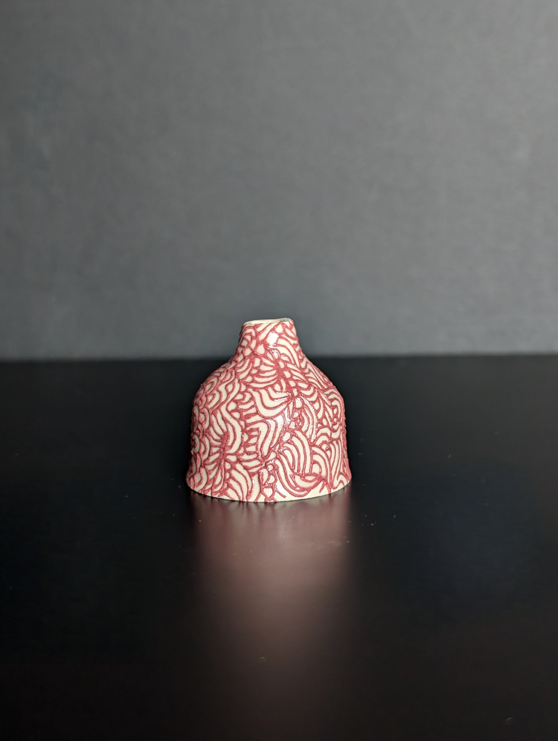 This midi bud vase is ideal for individual cuttings, single stems or broken pieces from a bouquet. This hand thrown vase has been lovingly created using stoneware clay, decorated in a delicate pink slip trail illustrative design.