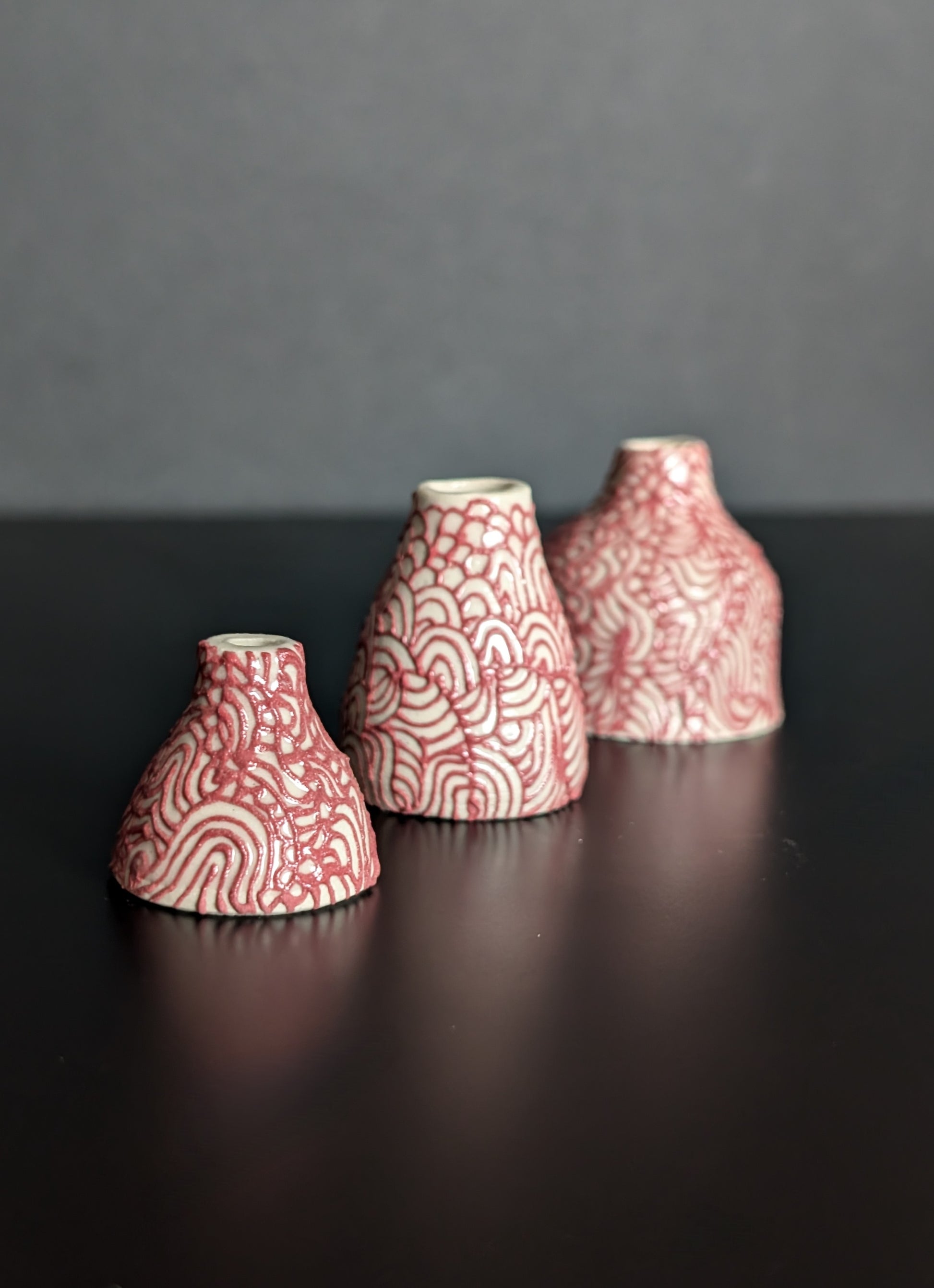 Midi Bud Vase, Slip Trail Flourish Pink Bottle