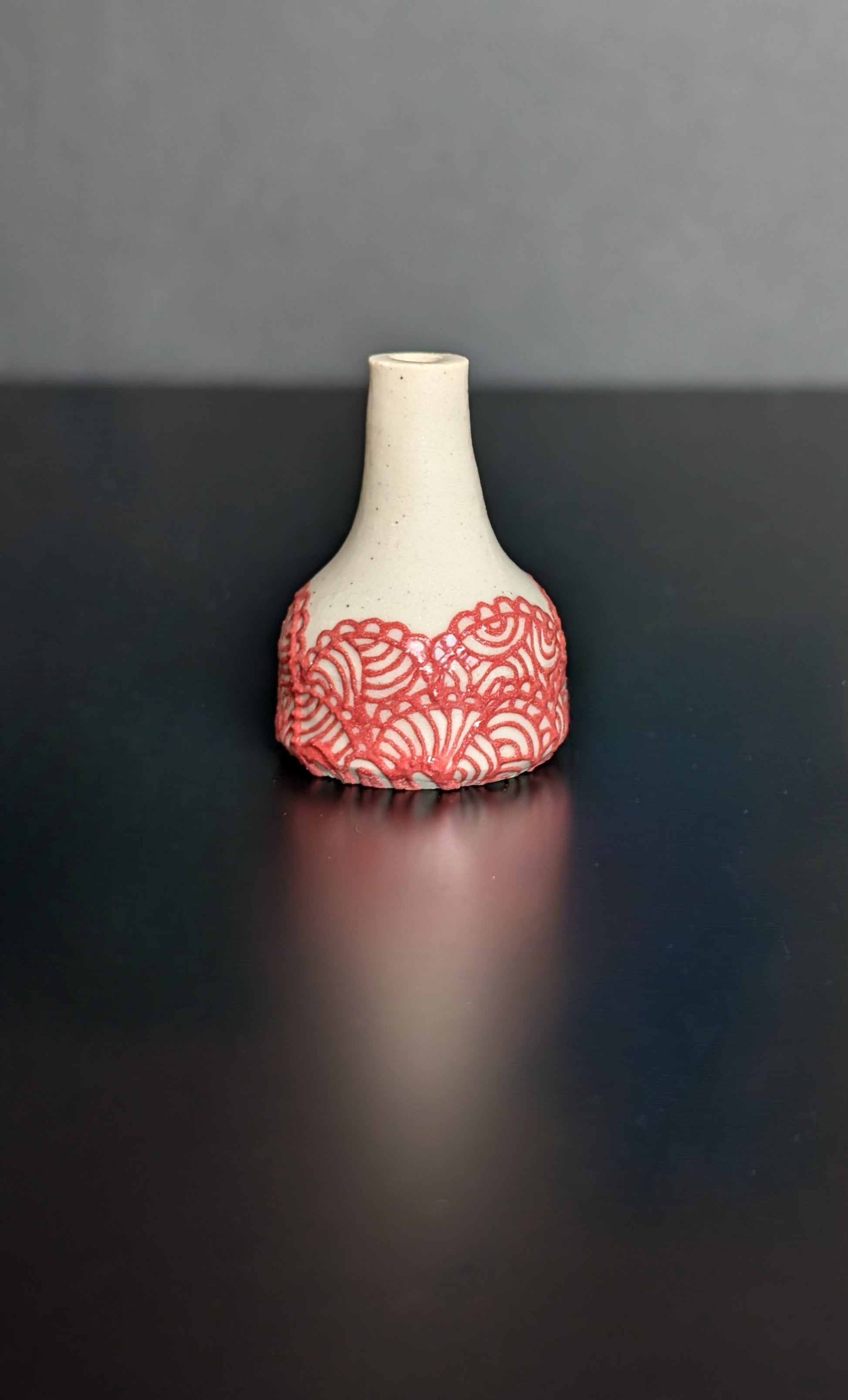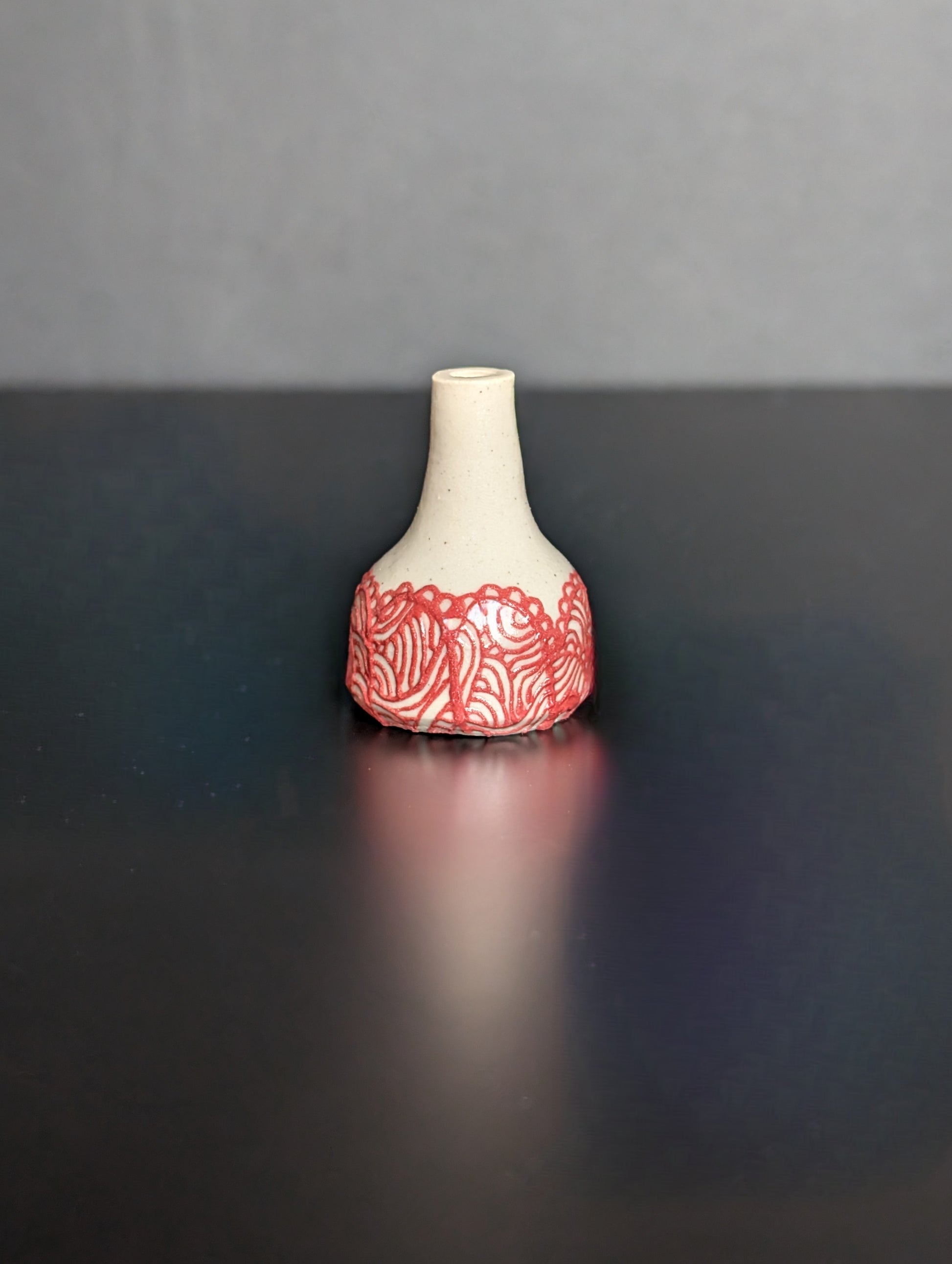 Mini Bud Vase, Slip Trail Lacey Red Bottle